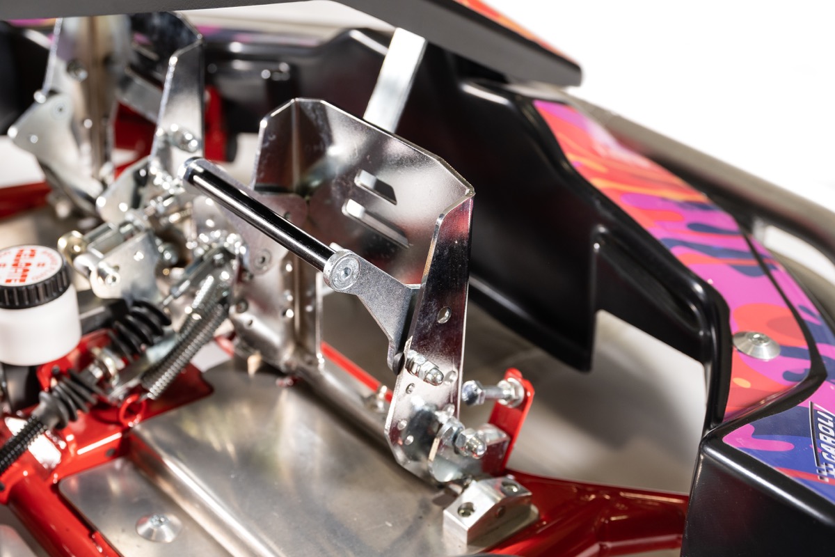 Standardmodellen är utrustad med självjusterande hydraulisk broms, täckta pedaler och ett robust aluminiumgolv med instegsplåtar. Justerbar stol och justerbara pedaler gör att karten passar förare från 120 cm.