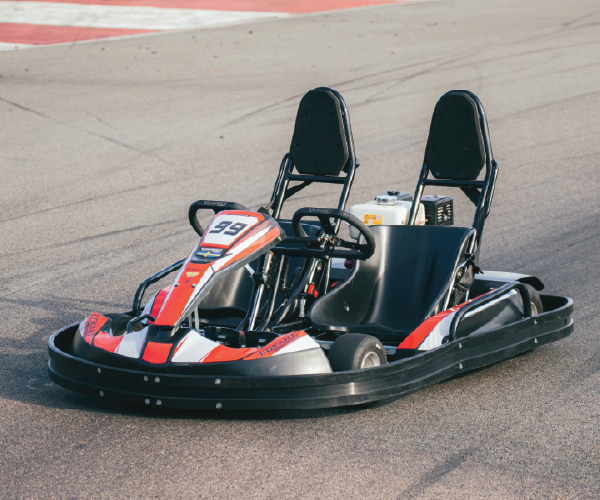 Stinger tillhör den nya generationens gokart med fokus på säkerhet och skydd. Alla vitala komponenter som kablar, slangar, styrstag och rörliga delar är helt täckta, vilket minskar risken för skador och ger ett säkrare alternativ för förare och personal.
